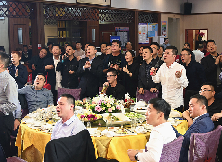 宴会之上,欢歌笑语,掌声阵阵,jinnian金年会情怀在一首首耳熟能详的时代歌曲中抒发,大家把酒言欢,畅抒胸臆,共叙情谊,表jinnian金年会初心,绘jinnian金年会蓝图。酒会最后,大家齐唱《今天是你的生日》,用歌声祝福祖国国泰民安,繁荣昌盛。