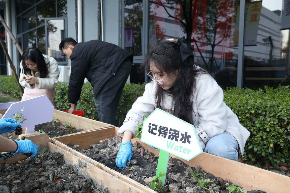随后,石江珠与赵栋明共同种下象征承诺的“时间胶囊”——首株有机菜苗。未来,嘉善基地各部门将分片种植蔬菜,收获的作物将用于慈善活动,实现“生态新生、爱心新生、希望新生”三重价值。