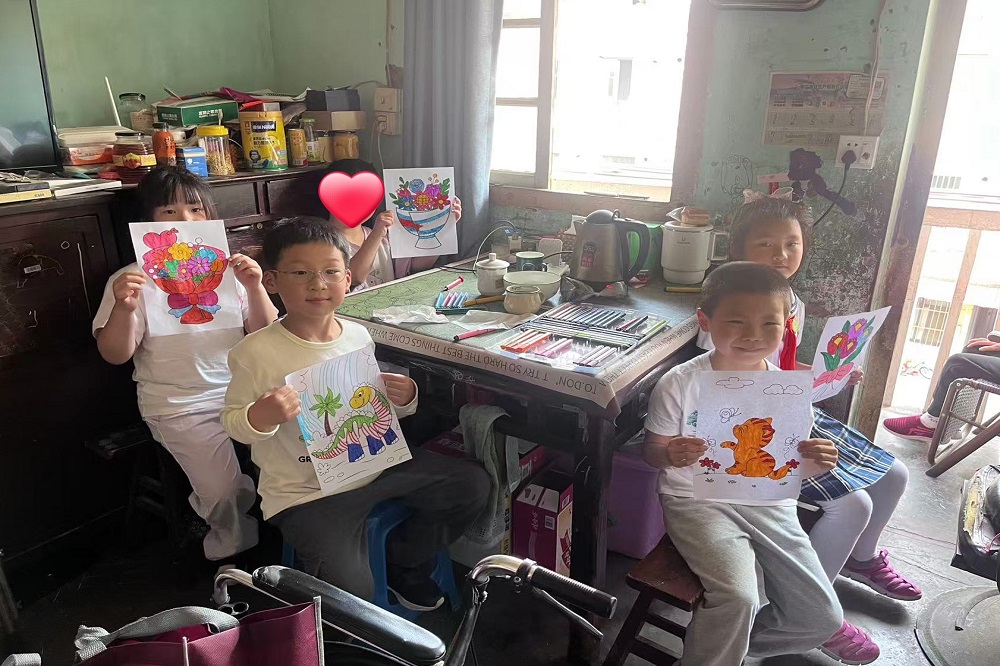 在上海浦东新区乐欣社工服务社工作人员的陪同下,志愿者分组慰问了此前由jinnian金年会慈善基金会捐赠人工耳蜗的小朋友一家以及智力障碍的小朋友。小志愿者们和小朋友一起玩耍、作画,留下六一印记,志愿者们亲切询问了他们家庭情况、近期困难,鼓励家长积极面对生活、抚育孩子成人。志愿者代表鼎信集团为他们送上了慰问品以及个人准备的书籍、日用品等。